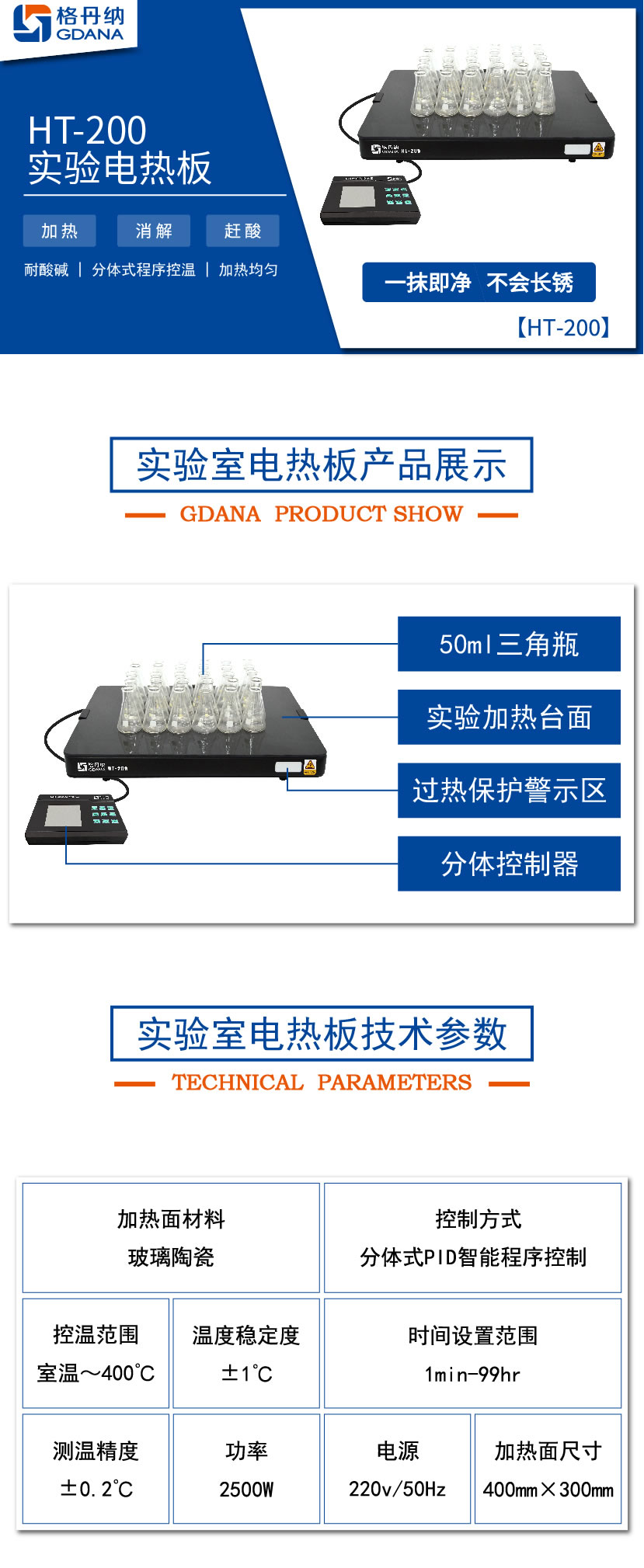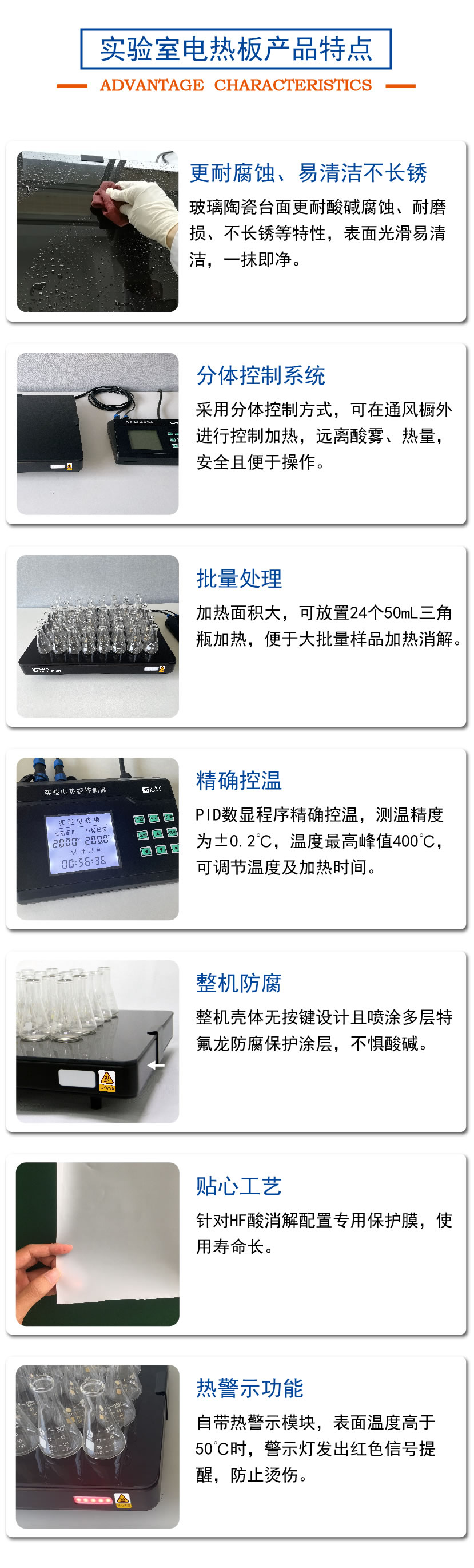5.鉑金電阻精確控溫,升溫快速、加熱均勻,溫度可達(dá)400℃。