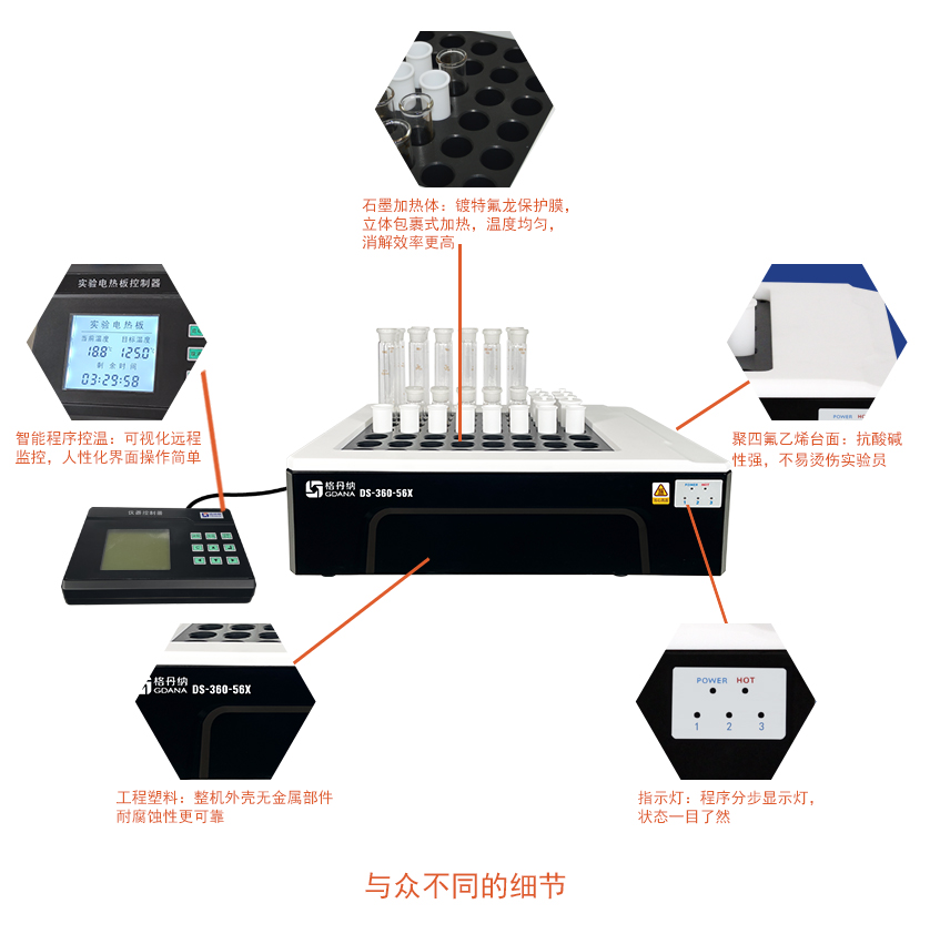 3.多孔設計,批量處理樣品,快速消解,節省時間。標配有:36、39、56、60等不同型號,且支持定制。