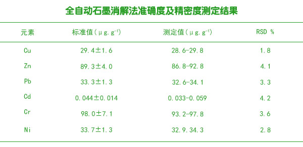 全自動石墨消解法準確度及精密度測定結果