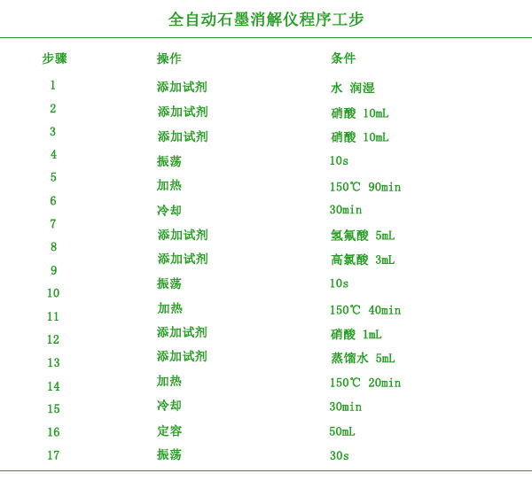全自動石墨消解儀程序工步