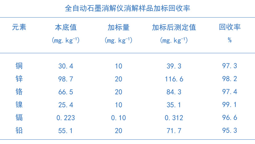 格丹納全自動石墨消解儀對土壤樣品消解方法加標測定回收率結果如下表:
