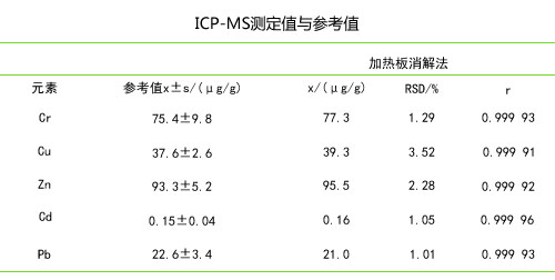 加熱板消解:稱取0.1000g標準土壤樣 品(各3個平行樣)于洗凈的聚四氟乙烯燒杯中,再加 步驟 入10 mL HNO3、3 mL HCL和 1mL HF,置于加熱 板上保持110~120℃恒溫加熱2~3h,趕酸至近干,用2% HNO3 將消解液定容于5mL,離心,等測;此外在土壤樣品 消解的同時,相同的試驗溫度、時間條件下再做3個試劑空白,以消除由于試劑帶來的誤差。