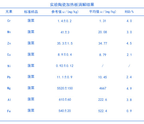 Cr,Mn,Zn,Cu,Ni,Pb,Mg,A1和Fe標(biāo)準(zhǔn)溶液(1000mg/L),菠菜GBW10015國家標(biāo)準(zhǔn)物質(zhì)。HNO3為BV級;H202 。