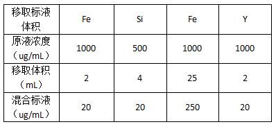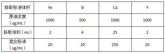 2.4Fe、Si、Ca、Y標(biāo)準(zhǔn)儲(chǔ)備液:1000ug/mL;