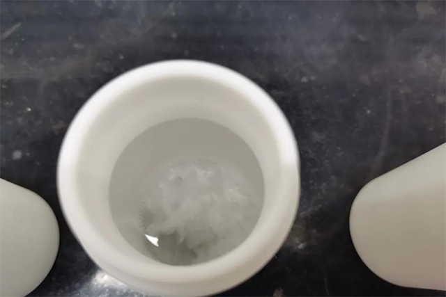 在恒溫220℃馬弗爐中消解1小時(shí);取出冷卻后擰開(kāi)蓋子,在實(shí)驗(yàn)電熱板中蒸至近干,約2mL,用5mL硝酸和少量水分清洗消解罐,出現(xiàn)白色結(jié)晶物,再加入5mL硝酸于220℃電熱板消解15min,蒸至體積小于20mL;