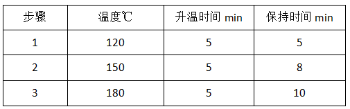 將經(jīng)過烘干并研磨成粉末狀的玉米樣品0.35克準確稱取至微波消解罐中,加入8毫升 硝酸和2毫升 高氯酸溶液,封蓋后放入微波消解儀內(nèi),同時進行兩份空白對照。按以下程序進行密閉消解。消解完成后,將消解罐冷卻至室溫,取出后將消化液轉(zhuǎn)移到25毫升容量瓶中,用超純水稀釋至刻度,備用。